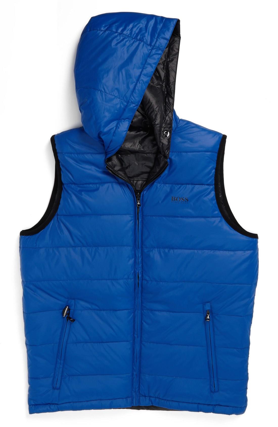 Hooded, 2 front pockets, two-sided, one side is blue, the other black. Very light, soft and warm! Suitable for any outfit!